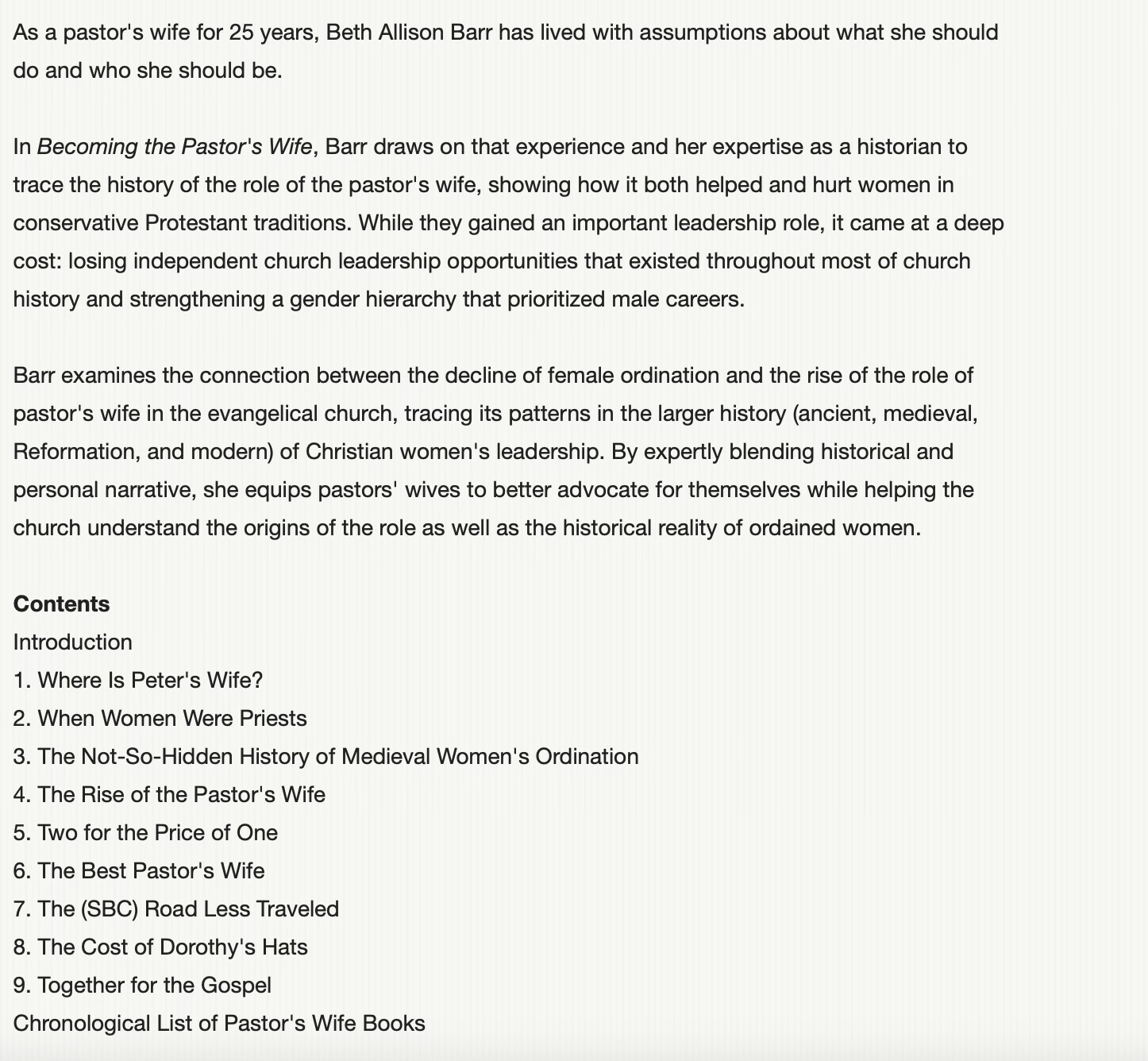 I expected to learn more about a pastor’s wife who had served faithfully alongside her SBC ordained husband for over 40 years.